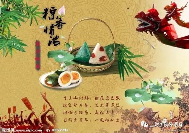 In the Warring States Period of ancient China, Qu yuan, a poet from the state of Chu (Hubei Province Nowadays) jumped into the Miluo River to commit suicide with a stone in this day. To commemorate his patriotic behavior, people took this day as a festival. Some parts of China also take this day as a commemoration day for Mr. Wu Zixu or Miss Cao E.