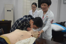 首先,章玉兰护士长细致讲解了心肺复苏方面的一系列知识,让同学们对心肺复苏有了清晰的了解。然后,章护士为我们详细培训了CPR的每个步骤。培训过程中,还有医护人员在一旁用人体模具为我们正确示范。