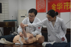 接下来的实操环节,医护人员耐心指正同学们操作中出现的错误,并进行讲解。在医生们的悉心指导和纠正下,同学都能把动作完成得很到位。互动中,汤小斌医生强调了紧急自救和互救的黄金时间,并且鼓励同学们在遇到紧急情况时一定要敢于用学到的知识进行自救和互救。