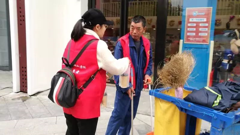 党员同志们带好提前准备好的热饮品,分小组为沿线环卫工人送去一份温暖,感谢这些每天起早贪黑的“城市美容师们”,他们是当之无愧的“最可爱的人”。