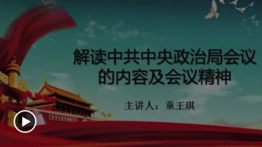 大家好,今天我们将开展外语系党支部第七次微党课的讲解,主讲人为16商英二班的童王琪,这次我们将一起来解读中共中央政治局会议的内容及会议精神。