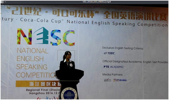 由中国日报社、可口可乐大中华区联合主办的第22届中国日报社“21世纪•可口可乐杯”全国英语演讲比赛浙江赛区总决赛于2016年12月3日在浙江外国语学院文三校区圆满落幕。