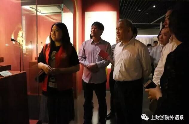 5月10日上午,外语系Linkers双语志愿者们在金华市博物馆接待了一批“特殊”的志愿者,原浙江省省长、现全国人大财政经济委员会副主任委员、浙江省博物馆志愿讲解员吕祖善和其他28位省博物馆志愿者,金华市委书记赵光君、金华人大常委会副主任周剑敏、市文物局局长汪希燕陪同参观。