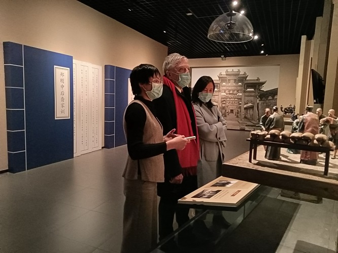 随着曹艳梅老师的生动讲解,格特·格勒布勒大使先生被中国灿烂文明和八婺文化深深吸引。在参观过程中,大使先生对上山文化、中国传统习俗、婺风家训产生了浓厚的兴趣,不时在展台前停下脚步,认真观看展品,详细了解情况并提出问题,曹老师一一用英文给予详细介绍。