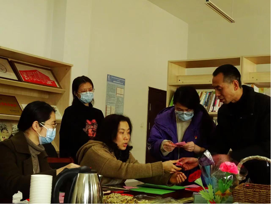 为迎接第112个国际妇女节,2月24日下午,上海财经大学浙江学院外语系以“巾帼心向党,共享‘馨’时光”为主题,以党史学习教育为主线,开展党建主题剪纸活动。本次活动由外语系工会主办,婺文化译播研究中心承办。外语系全体女教师及部分男教师代表参加了活动,以传统民俗剪纸的方式,迎接国际妇女节的到来。