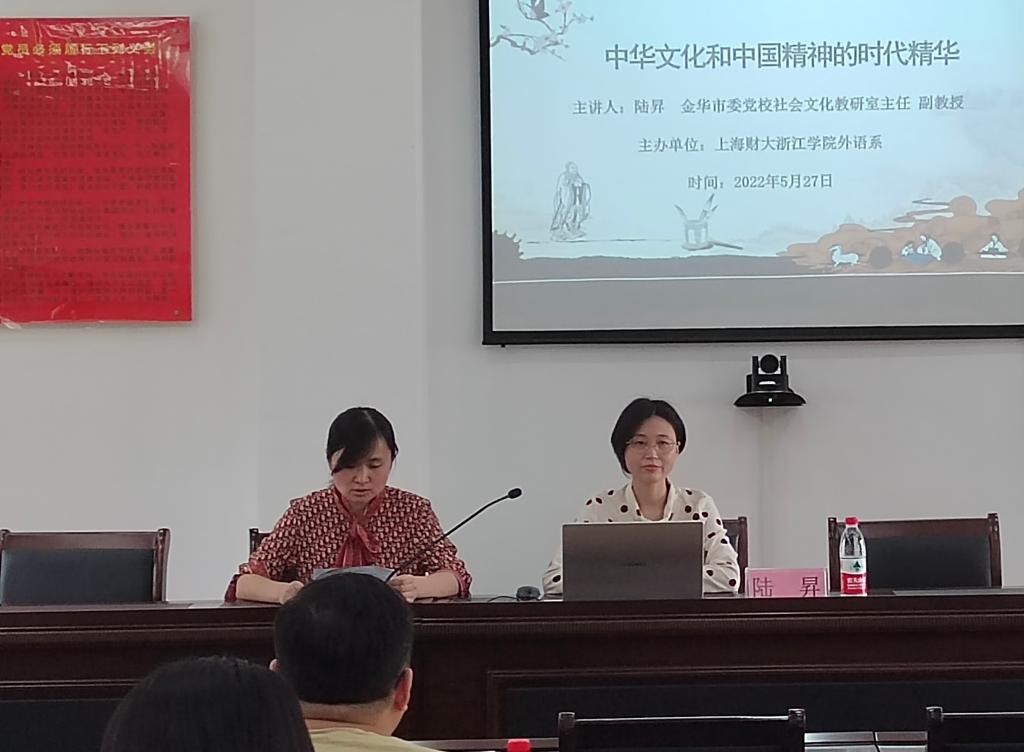 为加强专业建设与基层党建的进一步融合,促进外语系党支部党建品牌建设,5月27日下午14:00在28-118党员之家,外语系党总支邀请金华市委党校社会文化教研室主任陆昇副教授为师生党员开展题为“中华文化和中国精神的时代精华”的讲座,讲座由外语系总支纪检委员李慧主持,外语系全体师生党员参加了本次讲座。