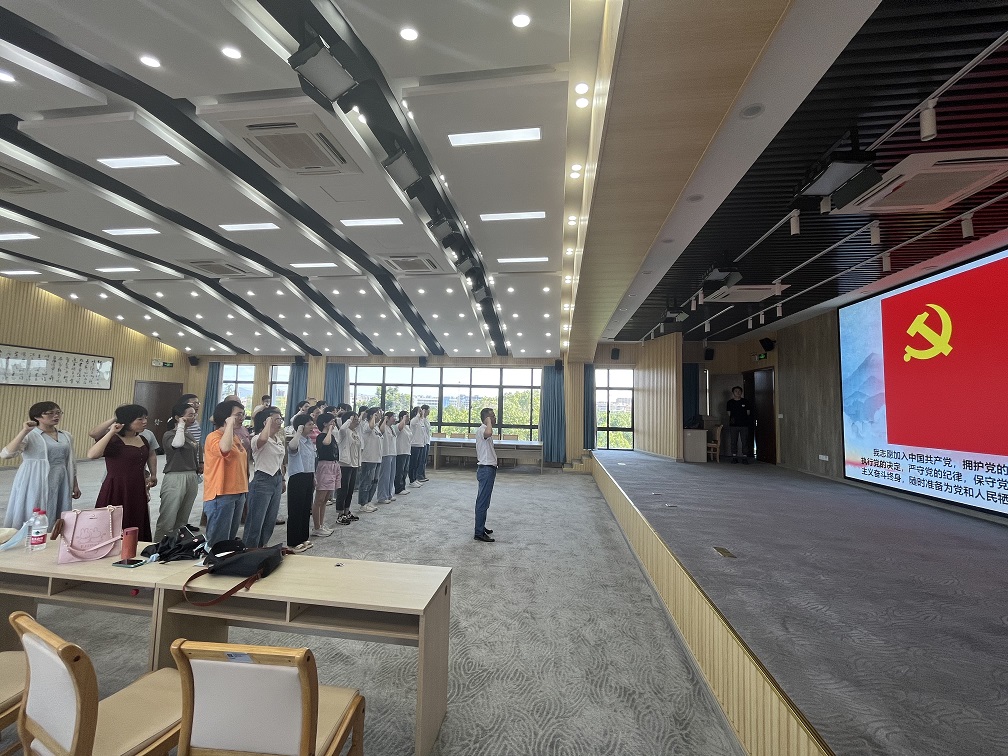 在活动最后,全体党员重温了入党誓词,党总支副书记王明照为上半年过政治生日的党员同志颁发了党员政治生日贺卡,要求大家时刻牢记党员身份,深刻认识“两个确立”的决定性意义,不断增强“四个意识”、坚定“四个自信”、做到“两个维护”,在工作生活中积极发挥先锋模范作用。