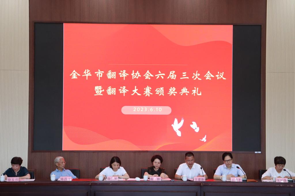 近日,金华市翻译协会第六届三次会议暨翻译大赛颁奖典礼在我院行政楼报告厅举行,决定将金华市翻译协会落户我院。金华市外事办主任陈艳,学院党委书记王建新,学院党委委员、统战部部长徐玉芳出席活动。