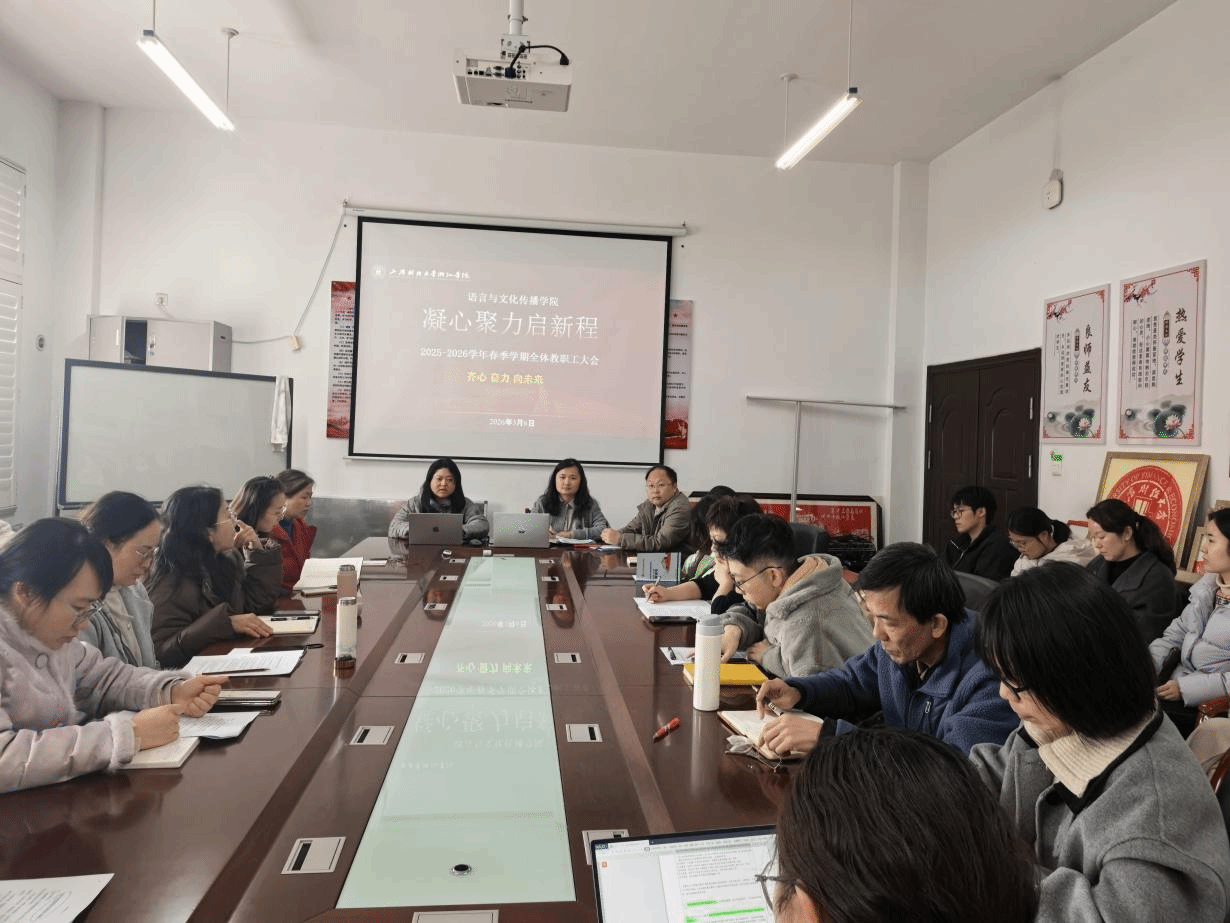 3月6日,语言与文化传播学院召开2026年春季全体教职工大会。此次会议是学院由“外语系”正式更名为语言与文化传播学院后的首次全体教职工会议。会议由学院党委委员、副院长(主持工作)李慧主持,全体教职工参加会议。