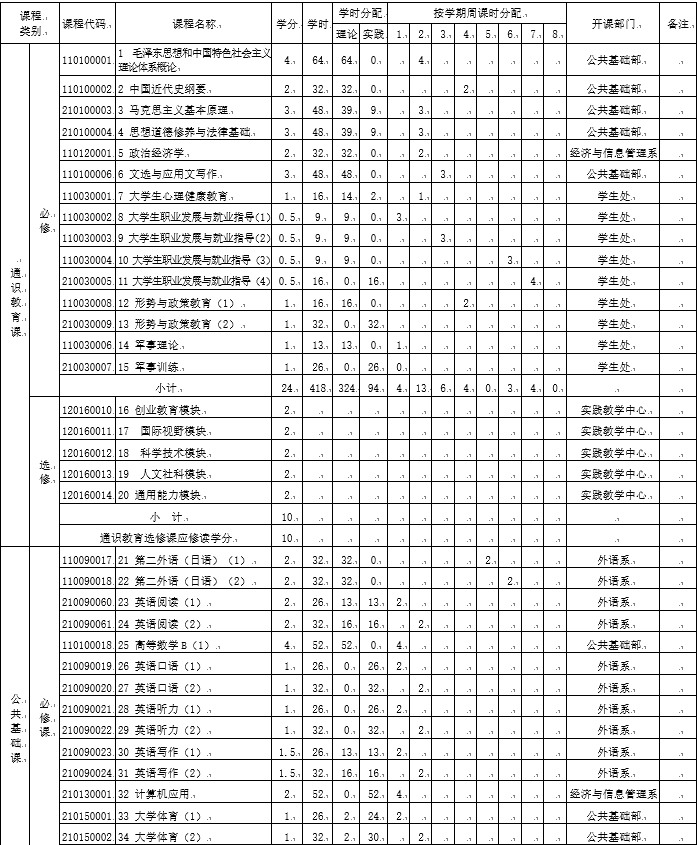 注:1.《形势与政策教育(2)》,分学期开设,第8学期认证;