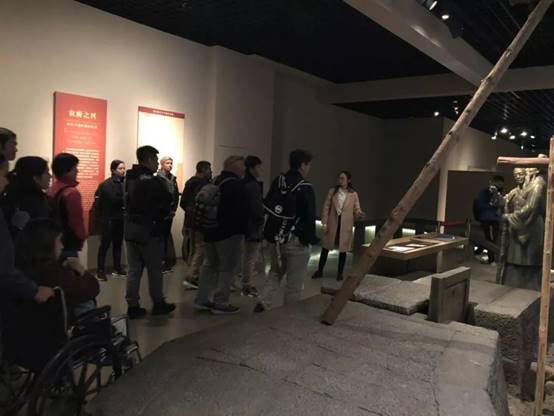 4月11日上午,来自美国加州圣地亚哥Feaster Charter School师生一行19人参观了金华市博物馆。整个参观过程历时1个半小时,我院外语系曹艳梅老师带领来访的师生领略了博物馆八婺古韵、神奇大地、乡土民风和百工之乡四大展厅的金华灿烂文明,并为他们提供了生动专业的英文讲解。