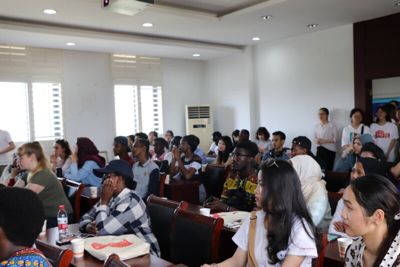 5月23日下午,我院迎来了40多位浙江师范大学留学生,他们参与了“文化进课堂”—婺剧脸谱活动。留学生们对于脸谱这种中国的非物质文化遗产非常感兴趣,向国家一级演员胡老师询问了很多问题,虽然语言不通,但是我院老师为他们提供了准确而又有趣的翻译,使整个课堂充满了欢声笑语。