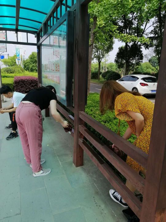 5月18日,双语志愿服务团队组织开展了以学校为中心的附近公交站台清理活动。由于公交站台常年矗立在道路两侧,蒙上了一层厚厚的尘垢。经过志愿者们的共同努力,公交站台焕然一新,让市民拥有了一个干净整洁的候车环境。