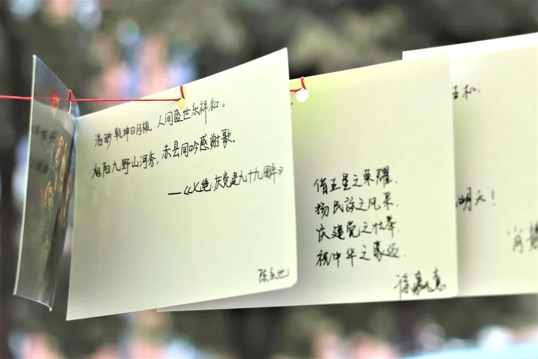 同学们还难掩心中激情,在明信片上留下自己对党和国家的赞美与祝福,留下自己的承诺与心愿。