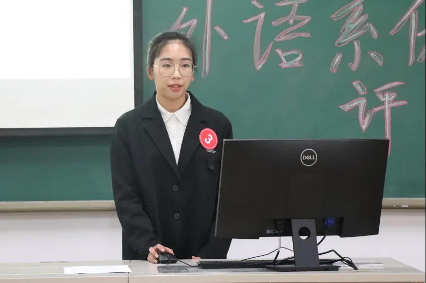 本次外语系优秀部员评比决赛分为PPT展示与现场答辩两个环节。在经历过初赛之后,参赛的各位部员显然变得更加自信。在PPT展示中,大家将自己丰富的工作经历简约扼要的展示出来,且对于未来发展也能各抒己见,让在座的评委点头称道。