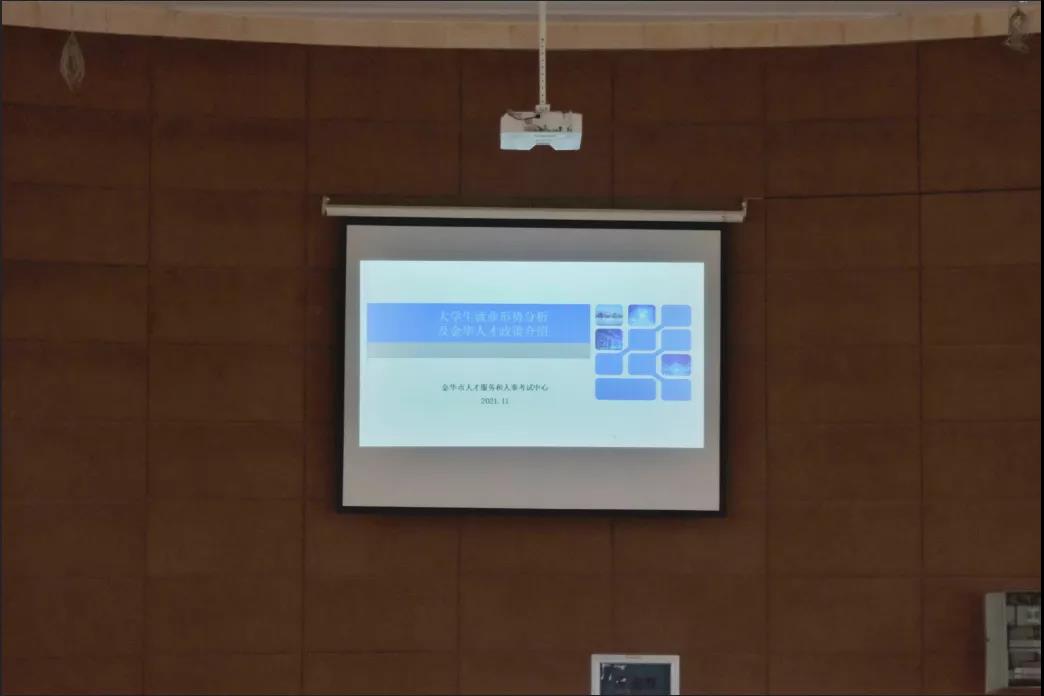 沈主任还为大家概括了金华人才政策,包括生活补助 ,专业技术人才奖励,创业补贴,全额贴息贷款,购房补贴,住房优惠,绩点积分制,专属人才码等多个方面,让大家对金华市就业情况有了更深刻的了解。
