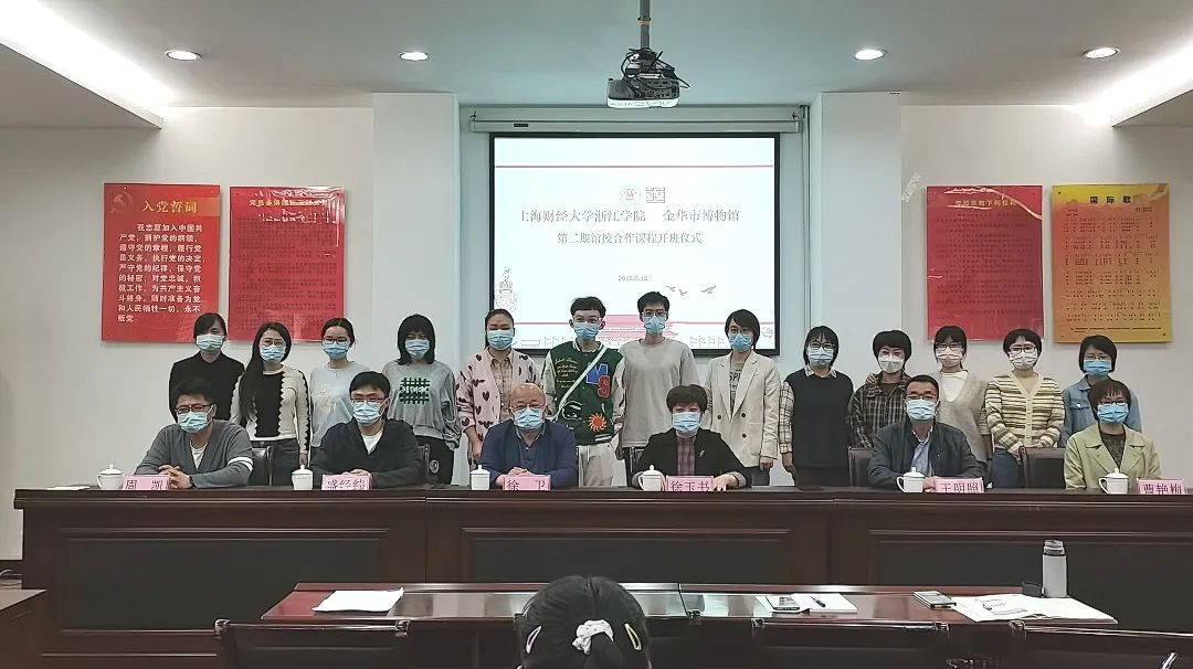 5月12日,上海财经大学浙江学院第三期馆校合作课程暨金华市博物馆第二期馆校合作课程开班仪式在学院党员之家如期举行,参加仪式的有:金华市博物馆馆长徐卫、外语系副主任徐玉书、外语系党总支副书记王明照、外语系有关负责人李慧、博物馆修复中心副主任盛经纬、婺文化译播研究中心主任曹艳梅、市博物馆副研究馆员周凯及婺文化译播研究中心的老师们。