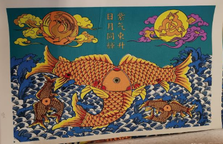 在黄馆长的带领下,我们走进了金华木版年画展示基地。白墙青瓦,雕梁画栋,尽显雅素明净,古色古香。黄馆长介绍道:“作为非物质文化遗产的木版年画,形成于宋元,鼎盛于明清,在此收藏着许多作品,例如五子登科、供水娃娃、防洪娃娃、连年有余......”金华是享誉全国的年画产地之一,金华木版年画填补了浙江木版年画艺术的空白,具有悠久的历史。
