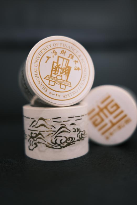 “不畏浮云”系列:灵感取自金华博物馆馆藏唐代铜镜《真子飞霜镜》,提取了最上部的云海图样并进行了简化,原镜表达了人们对超然尘世的追求与向往。结合当下快节奏的生活方式,希望去除浮躁之气,勇敢面对未来的挫折与挑战,设计了印章及和纸胶带。