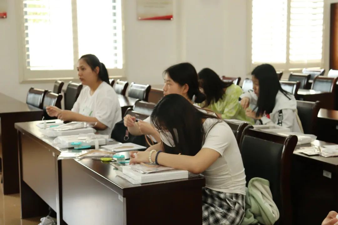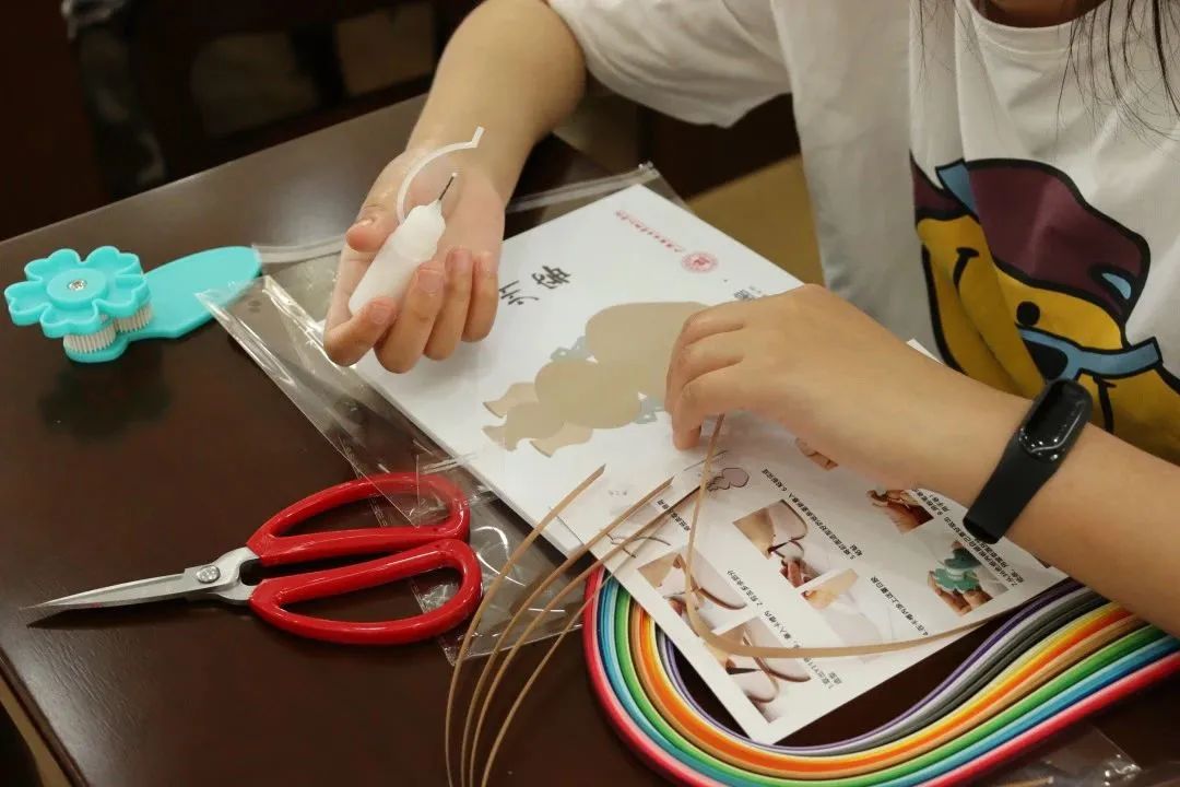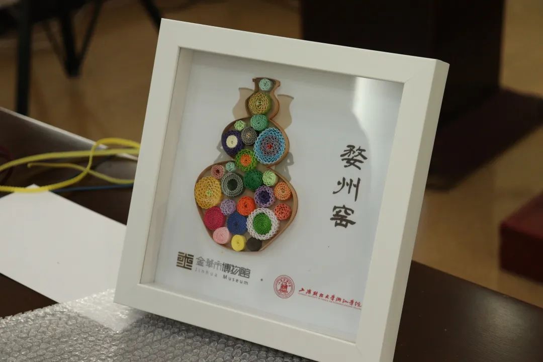 首先,叶老师向同学们展示了精致的成品,并详细介绍了本次手工艺品制作的过程与方法,让同学们了解婺州窑造型的作用以及背后所蕴含的意义。两位老师下发了彩色纸条、剪刀、胶水、相框、底板等工具后,同学们便开始了细致的制作工艺。