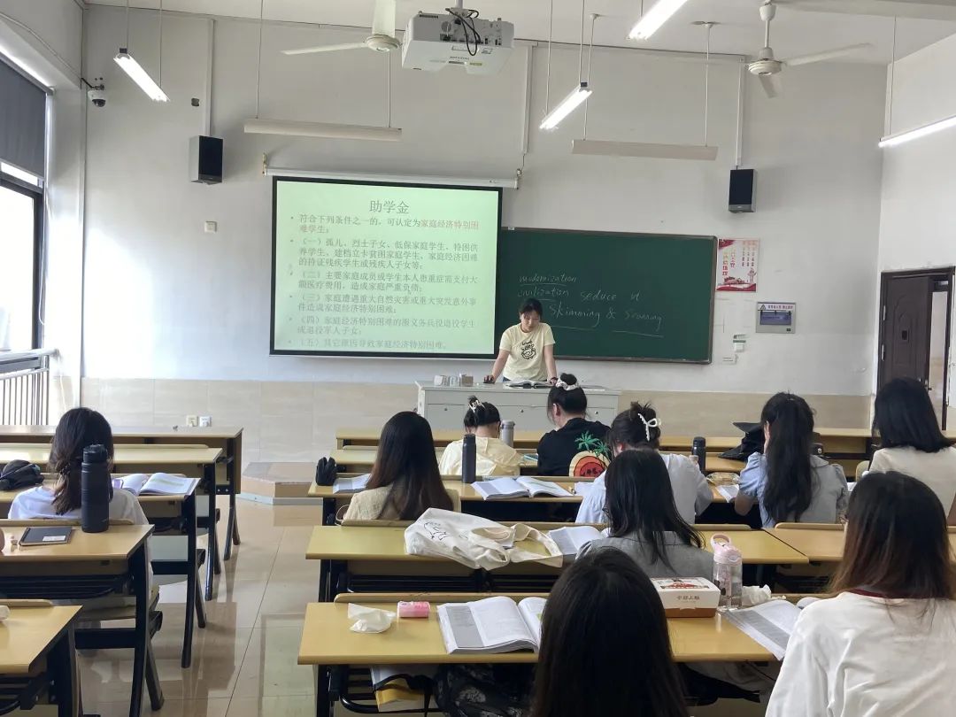 活动现场,同学们认真倾听,积极活跃,对相关补助政策有了一个更好的了解。通过本次主题班会,同学们也更加有信心在学业上完善自己,树立全面目标,奋发图强,探索通向成功的道路。