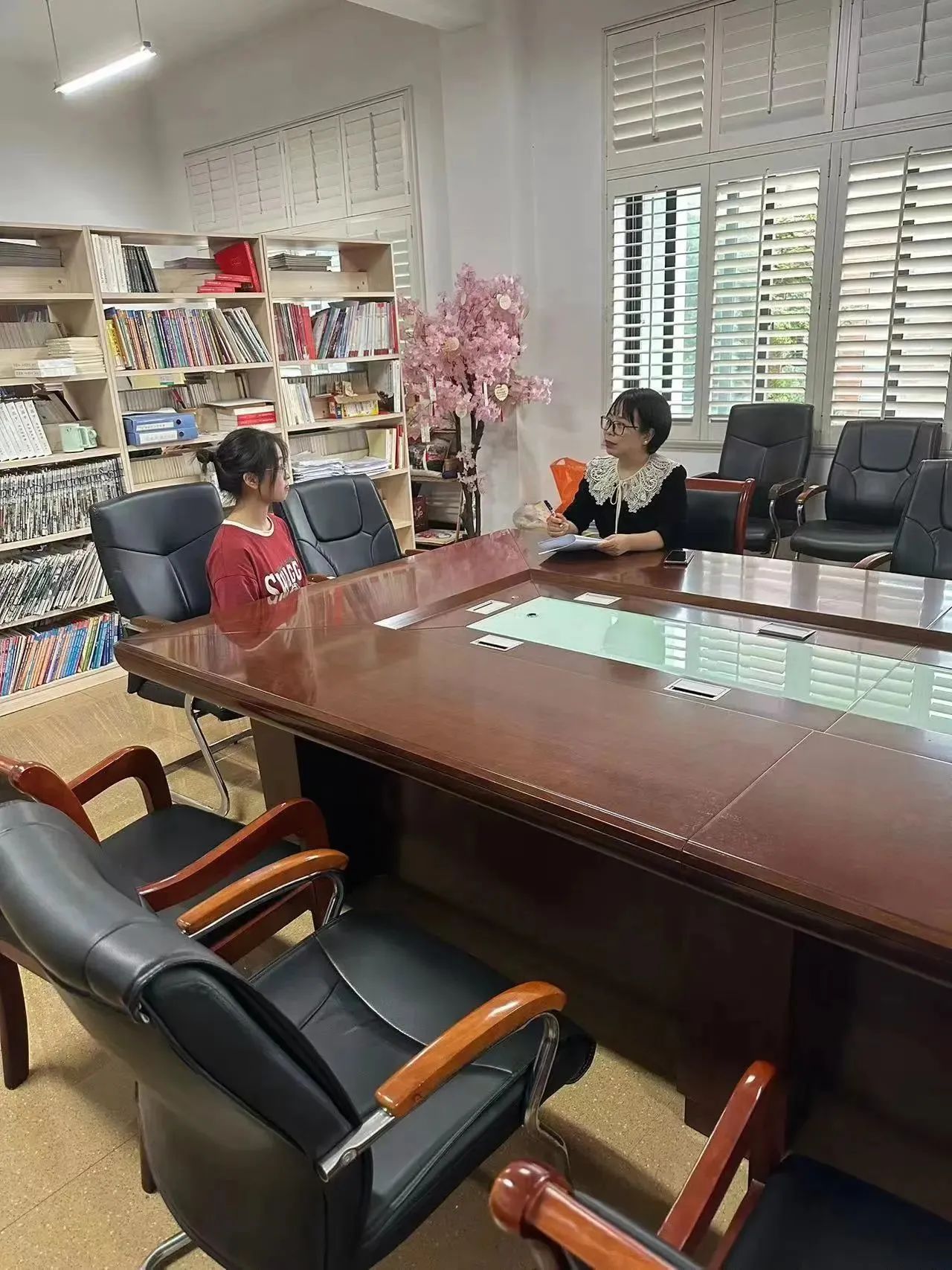 本次选拔,邀请到了外语系有关负责人李慧老师、婺文化译播研究中心主任曹艳梅老师、骨干教师胡亦丹老师作为面试官,候选人分成三组,分别由三位老师进行面试。老师们根据自己的婺文化研究经历与志愿者经历,从非遗文化传承和志愿服务两个角度与候选人进行交流提问,着重询问了候选人对婺文化的了解程度与对传承非遗文化的见解看法。志愿者们表现沉稳,有条不紊地回答着评委老师的问题,言语真挚地抒发了对非遗文化的热爱与非遗文化传承的赤忱,表达了为文化传承、传播贡献的心愿,并根据自己的过往经历与在金华的所见所闻,发表了各自的见解。老师们严格按照标准、仔细斟酌,给出了中肯的意见、给予了合理的分数。同时叮嘱了作为一名合格的志愿者应该应该具备的品质,希望大家都能发挥“奉献、友爱、互助、进步”的志愿者精神。