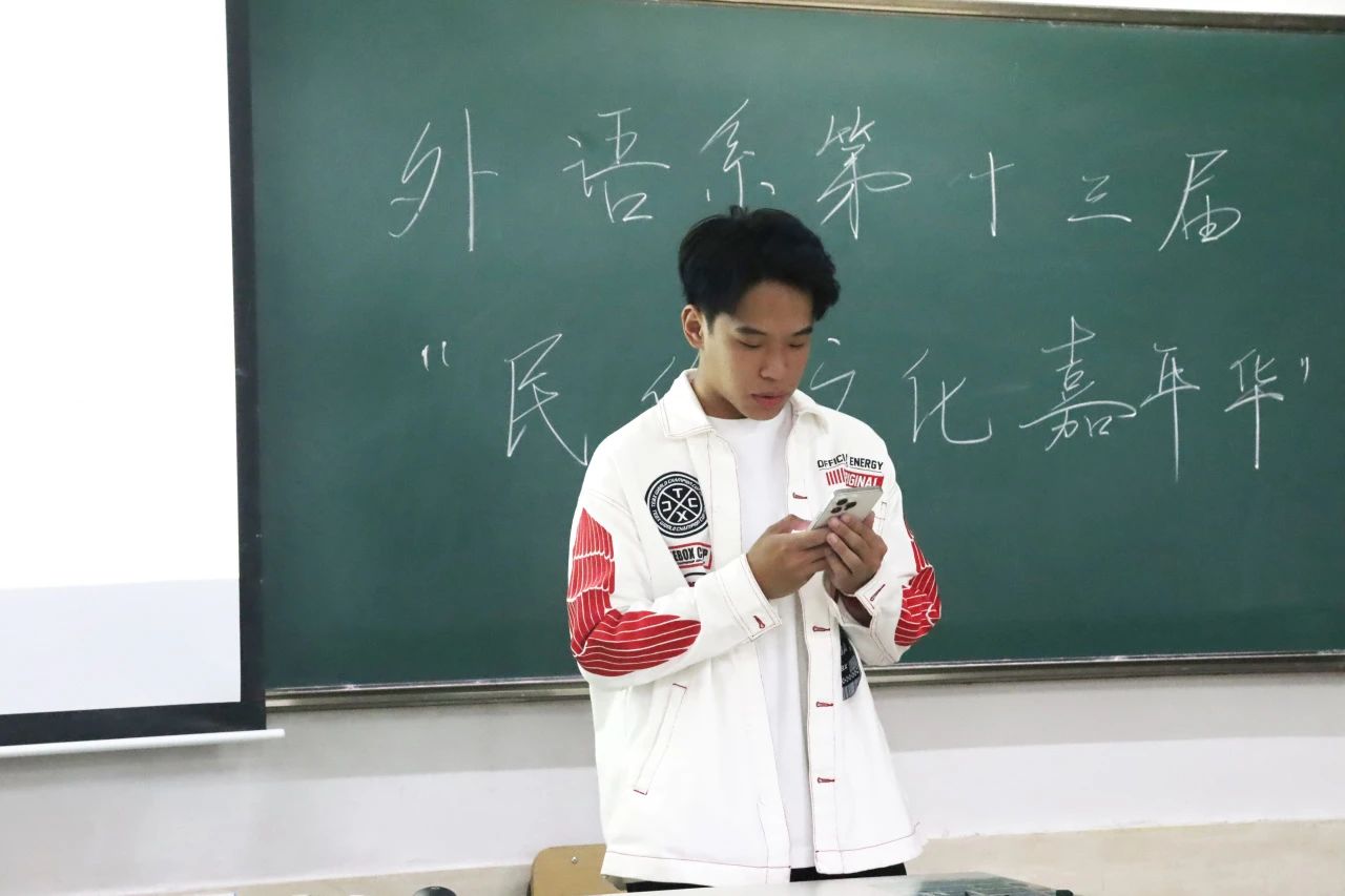 传统文化是民族的根脉,文化则是其骨血,它们在人们心中涌动,讲述着记忆,引发共鸣。为了传承和弘扬传统文化,了解祖国各地的风土人情,展现不同区域的文化魅力,外语系团总支学生会学生管理部于10月17日晚在7-110教室举办了“民俗文化嘉年华”活动。