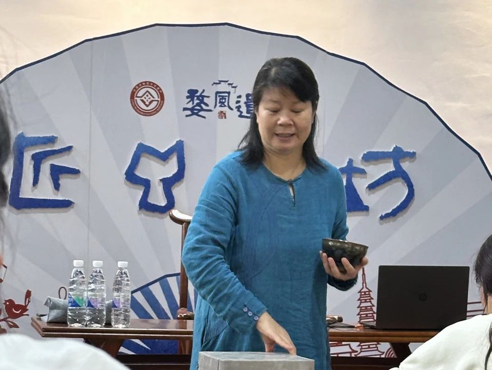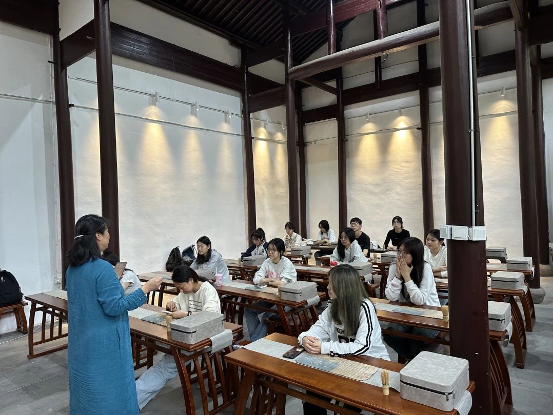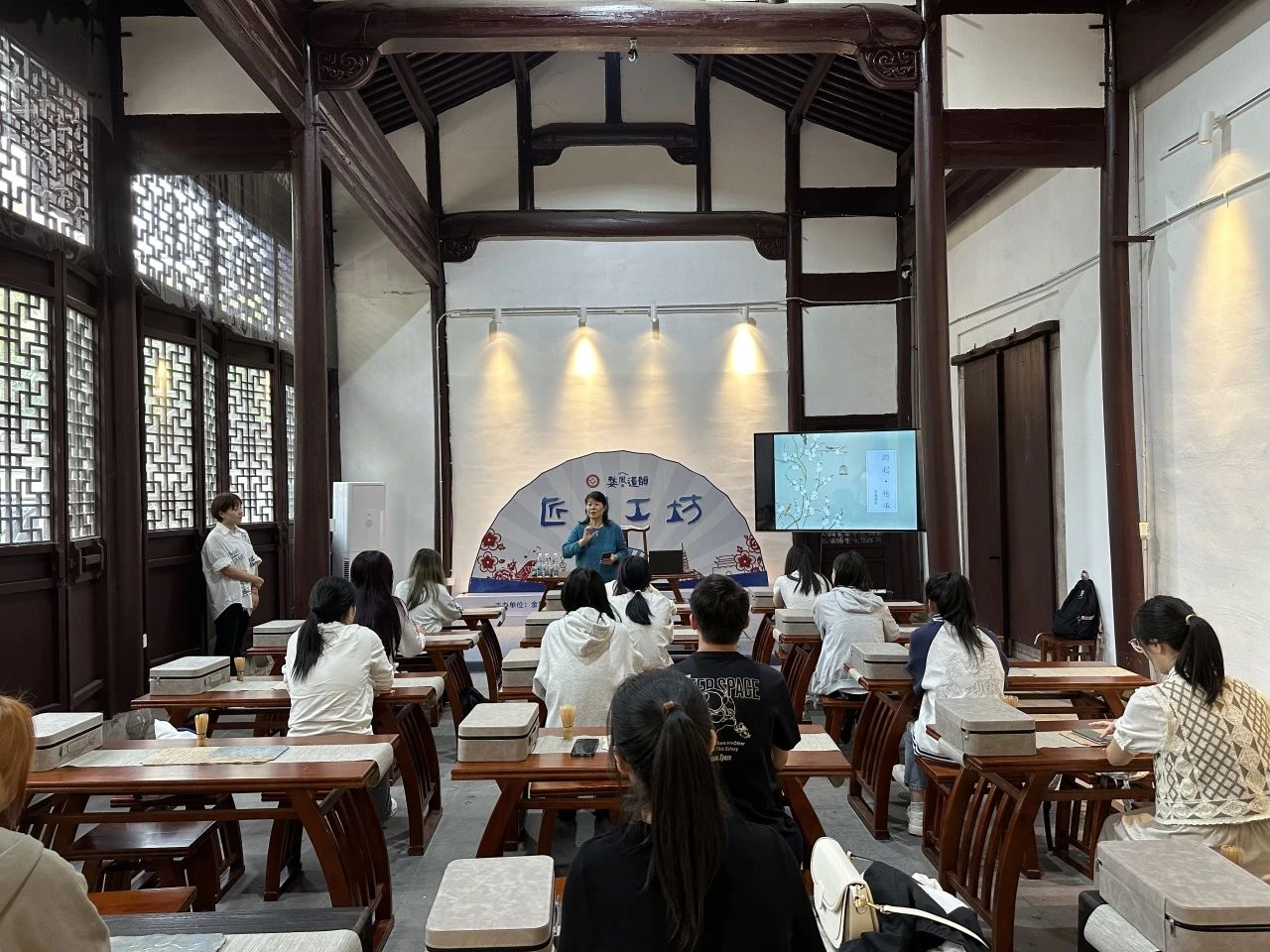 10月26日,由上海财经大学浙江学院婺文化译播研究中心和金华市非遗保护和信息中心合办的馆校课程“婺州举岩茶宋代点茶技艺”第一次课程在金华市非遗中心匠心工坊举行。本次课程由国家一级茶艺技师郑咏恩主讲。郑老师介绍了非遗的源起和传承,带领同学们穿越到宋代,感受宋代点茶文化。