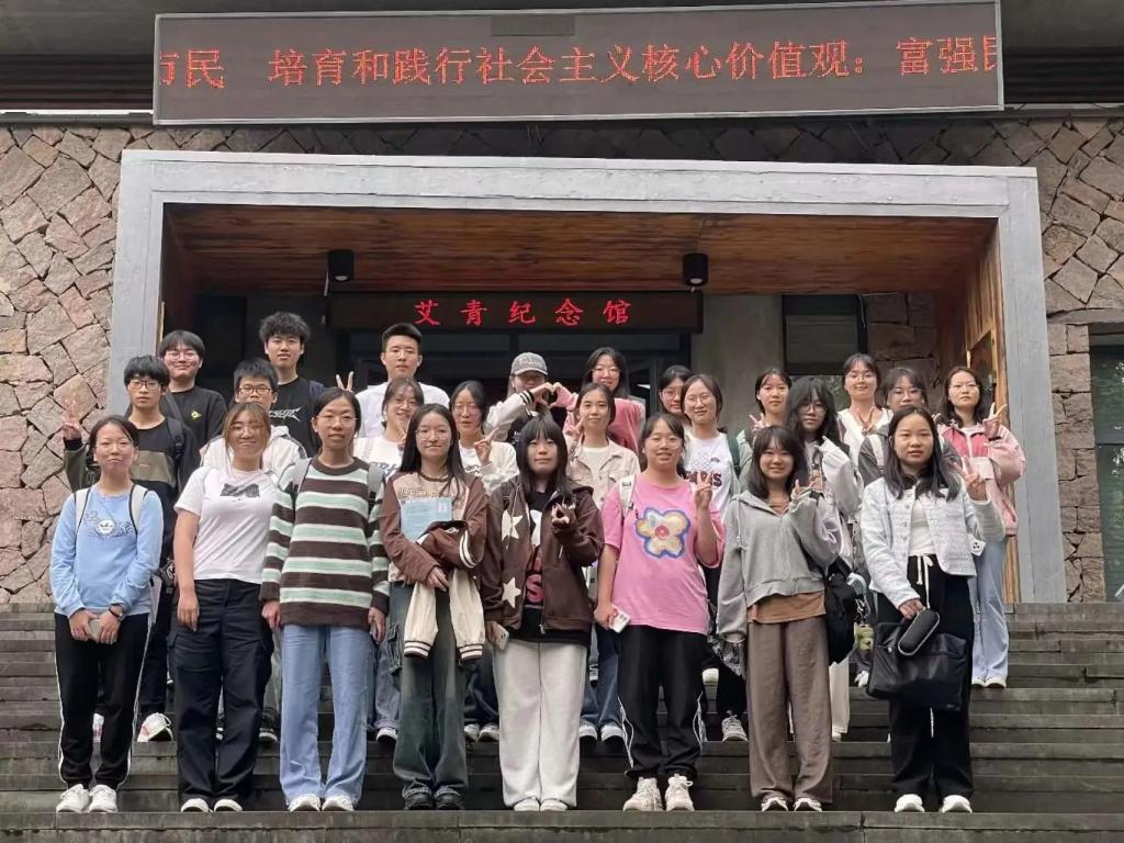 艾青出生于金华,作为中国社会发展重大历史进程的见证人,作为一位诗人,艾青将他的名字、他的诗作深深地刻在了一代又一代中国人的文化记忆中。在参观过程中,讲解员以形象生动的语言,通过大量的实物、照片、手稿、书信等展品,向同学们再现了艾青一生的光辉业绩和艺术成就,领会到艾青当年对人民苦难的深切关注和对祖国土地的真挚热爱。