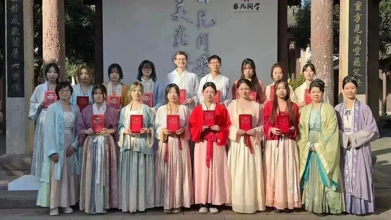 此外,我校的外教老师Joe也换衣饰妆,参与了结课汇报。在同学们和老师们的描述下,Joe更加表现出对中国茶文化的极大兴趣。这次课程也使得Joe对非遗文化宋代点茶有了一个更深的了解。