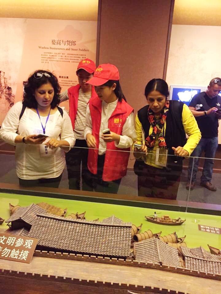团队与金华市博物馆合作,开展了一系列馆校活动:邀请外国留学生们来校开设婺剧脸谱、书法等大讲堂;在市博物馆为外国游客提供双语讲解;与11位中国工艺美术大师对话,用镜头和笔杆记录东阳木雕,用图像和双语讲述非遗故事,利用新媒体平台让浙江非遗“走出去”,让更多国际友人了解东阳木雕的技艺与传承;在Youtube平台开设“婺州文物说”栏目,英语讲述博物馆文物背后的故事。这不仅向国内外游客提供了展示婺文化、红色文化、生态文化的窗口,也让收藏在博物馆里的文物、书写在古籍里的文字活起来,让人们能真切感受到地方文化的魅力。