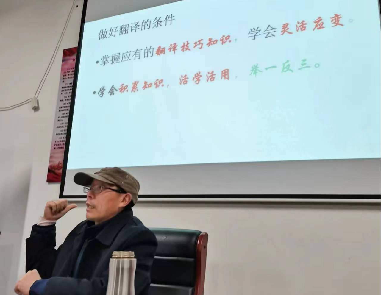 李老师提到,做好翻译工作各位成员应提升个人知识储备,以此为基础,在实践过程中才能领悟翻译的奥秘,随之加深翻译的兴趣,并从中获得精神上的快乐。