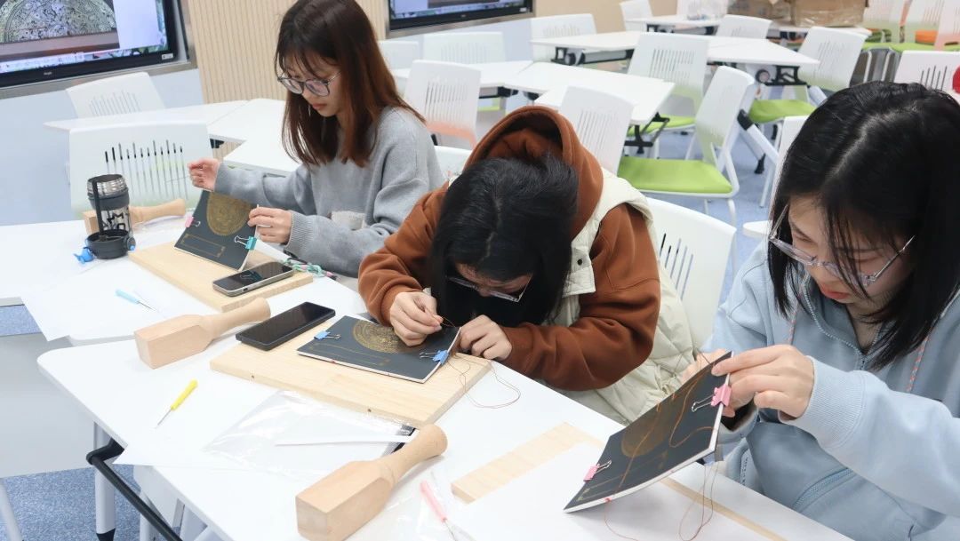 接下来,老师向同学们介绍了古籍装帧的技巧和方法,指导同学们应用材料,利用线与孔的配合,进行古籍的装帧。在这个过程中,老师还特别强调了要关注审美与工艺的结合。在装订时,要注意纸张的排列顺序和松紧度;在装饰时,要合理运用色彩和图案,使典籍更加美观大方。古籍的装帧不仅要注重实用性,更是要追求美观与艺术的融合。从选材到工艺,从色彩到图案,每一处都体现了古人的匠心独运和审美追求。在老师的耐心指导下,同学们全身心地投入了古籍的装帧中。