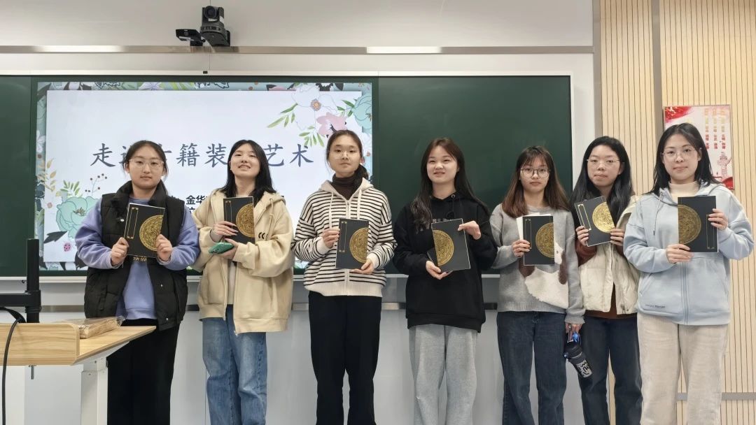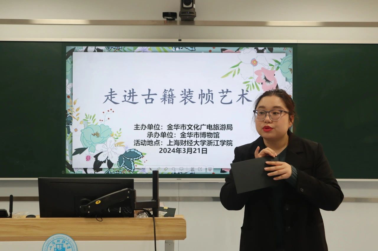 外语系与金华市博物馆合作的第六期美育大课堂于3月21日在6-104正式开讲,本次课程共分6期,第一期课程由金华市博物馆的洪晓敏老师作主讲,讲授了“古代典籍的装帧”这一课程。
