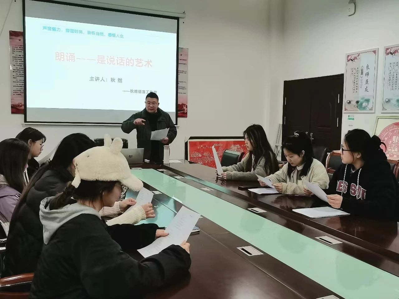 艾青出生于浙江金华,是中国现代诗的代表诗人之一。今年是诗人艾青诞辰114周年,为纪念艾青的杰出成就,参与后续的纪念系列活动,外语系特举办诗词诵读技巧培训,邀请秋然老师进行一场关于朗诵发音技巧、肢体动作、朗诵表演等内容的讲座。