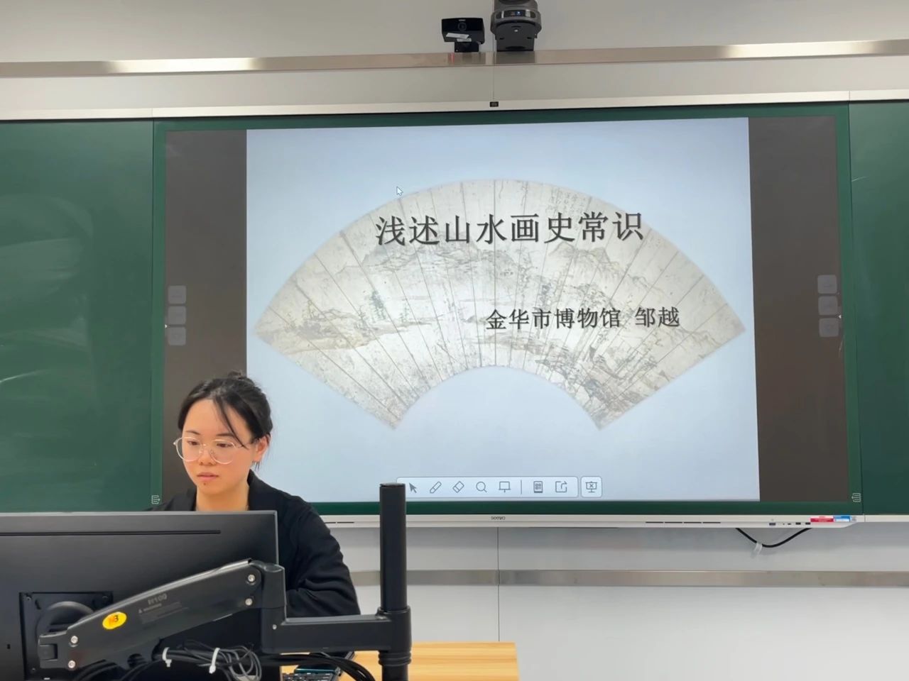 4月25日,馆校课程第五次课程“中国传统书画鉴赏”在6-104举行。本次课程由金华市博物馆邹越老师讲授,她带领同学们鉴赏了传统书画。