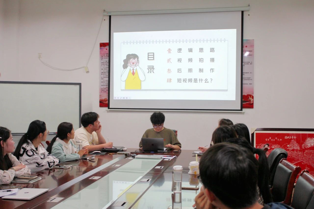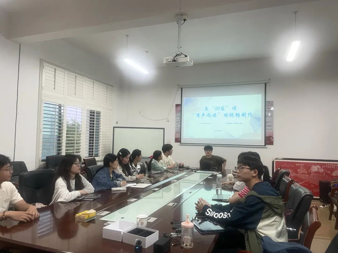 “短视频”是当下社会全民广泛接触并使用的有效传播手段,为促进外语系学生拍好短视频、讲好金华故事、讲好婺风宋韵风采,6月5日晚,外语系联合金华市图书馆,邀请金华广电融媒体记者沈之阳开展题为“与‘00后’谈‘有声阅读’短视频制作”公益培训,视界非遗工作室全体成员和12期拟发展对象参加了本次活动。