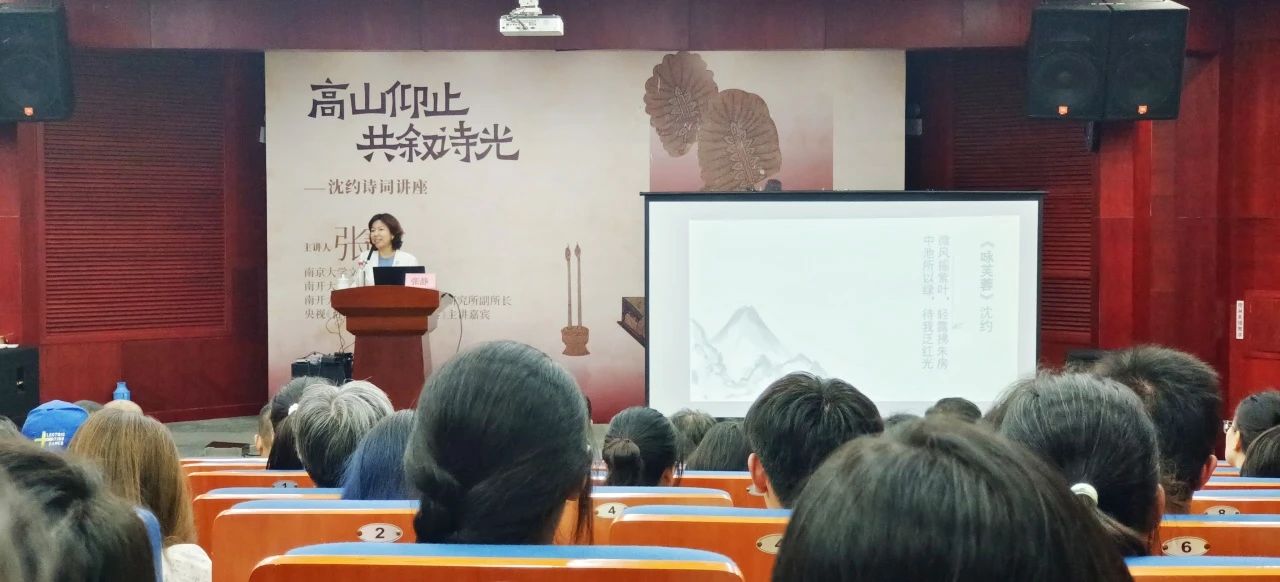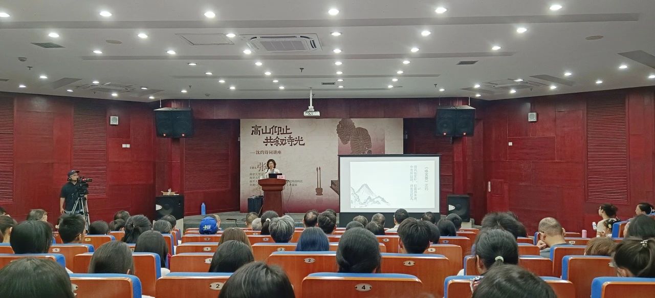 张教授以其深入浅出的方式,讲述了南朝时期著名的史学家、文学家沈约的诗词创作。她不仅深入剖析了沈约诗词的独特魅力和艺术价值,还详细阐述了沈约在文学史上的重要地位。张教授以《咏新荷应诏》《咏芙蓉诗》为例,与其他诗人的诗词做对比,为我们深入剖析审阅诗词的独特魅力,艺术价值以及其在文学史上的重要地位。沈约对音律格律的贡献尤为突出,他提出“四声八病说”为中国古典诗词的音律之美奠定了基础。沈约对自然美景的细腻描绘,如“高台骤登践,清浅时凌乱”展现出山水的灵动与静谧,对人生的深刻感悟,如“生平少年日,分手易前期。及尔同衰暮,非复别离时”道尽岁月流转中的无奈与沧桑。沈约的诗词作品是中华民族宝贵的文化遗产,他们承载着历史的记忆和先人的智慧,值得我们去品味去传承。通过张教授生动的讲解,那些沉睡在诗词中的文化精神被重新激活,中华优秀传统文化的创造性转化和创新性发展也得到了有力的推动。此次诗词讲座不仅提升了同学们的文学素养,也促进了不同文化背景的人们之间的交流与融合,为推动地方文化的多元发展起了积极的作用。