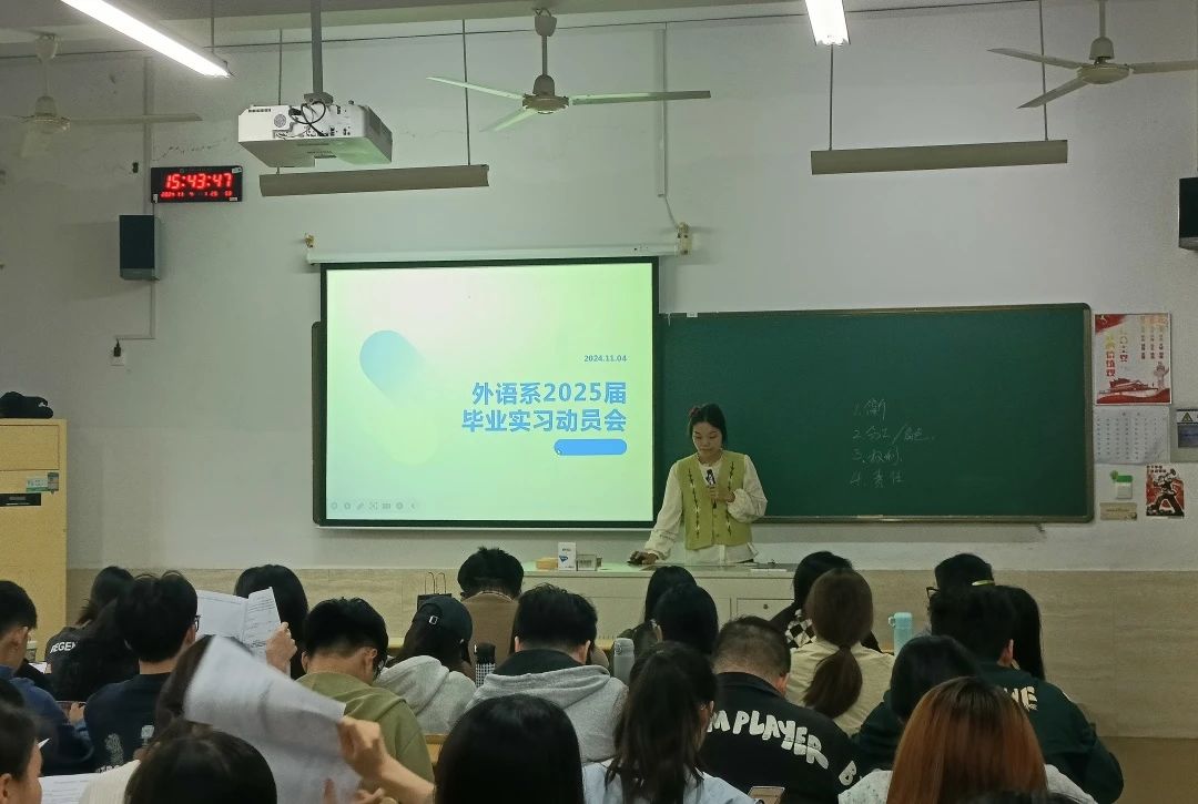 为深入贯彻习近平总书记关于大学生就业工作的重要指示精神,全力做好毕业生实习就业工作,实现毕业生“早就业、就好业”的目标,11月4日下午,外语系2025届毕业生岗实习暨就业工作动员大会在7-111举行,毕业班辅导员及全体2025届毕业生参会。