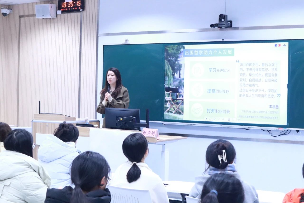 为了让外语系学生深入了解法国文化与教育,激发留法兴趣,外语系于12月5日晚在6-106成功举办了《法国文化与教育介绍》专题讲座。本次讲座由法国高等教育署杭州办事处负责人耿雪婷老师主讲。