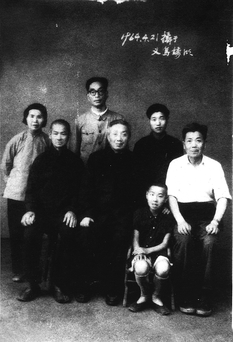 1964年4月,陈望道应邀到杭州大学演讲,和中文系义乌籍学生合影。演讲结束后,陈望道专程回义乌,这也是他生平最后一次回到家乡。其间,他住在县城,叫来分水塘村干部“把老宅捐给国家”,并和家人、亲属合影留念。
