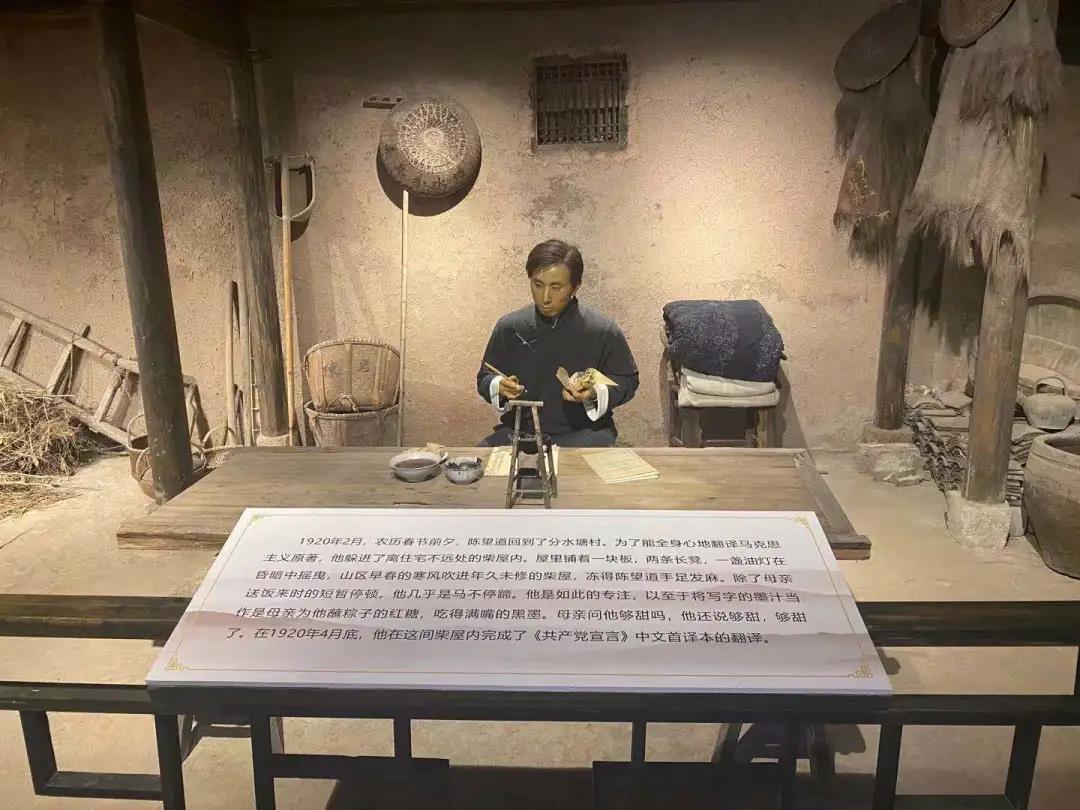 陈望道翻译《共产党宣言》时,年仅29岁。他没有想到,自己在分水塘废寝忘食用通俗易懂、精炼有力的文字翻译出来的中译本《共产党宣言》点燃了革命火种。《共产党宣言》诞生后不到一年,中国共产党正式成立,由此开启中华民族伟大复兴的新纪元。