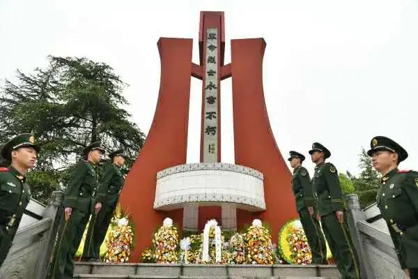 陵园后部有30座墓,安放着各个时期为国家民族解放而英勇牺牲的烈士忠骸。后面是毛泽东手体十四个大字。
