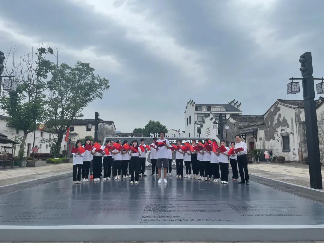 5月28日上午,踏上这座诗情流淌着的村庄——畈田蒋村,蔚蓝的天空,高高的马头墙,上海财经大学浙江学院外语系学生、金华市艾青纪念馆党支部党员组成的老中青三代同台领读,吟诵诗人那震撼人心的诗句:“为什么我眼里常含泪水,因为我对这土地爱得深沉。”“大堰河,我是吃你的奶长大的/你的儿子……”“大堰河是我的保姆,我敬你爱你。”共同感受诗人赋诗以歌,深厚的思乡恋乡情结。
