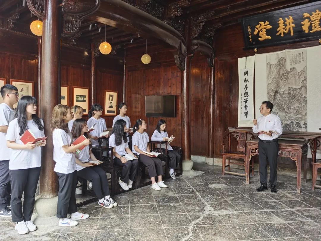 故居内青砖铺地、雕梁画栋,陈列着的珍贵影像真实全面地展现了艾青的一生。礼耕堂,“耕读”家风熏陶下,金华市艾青纪念馆党支部书记周国良与同学们分享《我和我的祖国》《信仰的味道》《井冈山的答卷》《凝聚强大中国力量》《英雄赞歌》等红色经典图书,大学生们沉浸在倾情讲述的光辉历史中,学习党史,汲取力量,坚定信仰,奋勇向前。