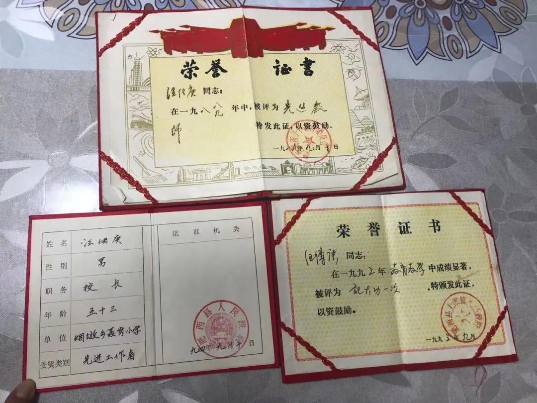 “为人民服务”、“努力工作”、“不忘初心、牢记使命”是采访过程中老人们经常挂在嘴边的几句话。汪爷爷,当了一辈子教师,“当时,我一个人教全科”,几十年的忙碌教学中,没有请过一天假。即使当工作和生活发生冲突时,他毫不犹豫地选择工作。除此之外,他还经常和学生一起参加有意义的活动,这此他感到特别骄傲和自豪。听奶奶补充,即使到了现在这个年龄,他还经常参加村里活动并且支持他们的工作。爷爷激动地拿出他当年所获得的荣誉证书,我想“努力工作”就是爷爷一生所求。