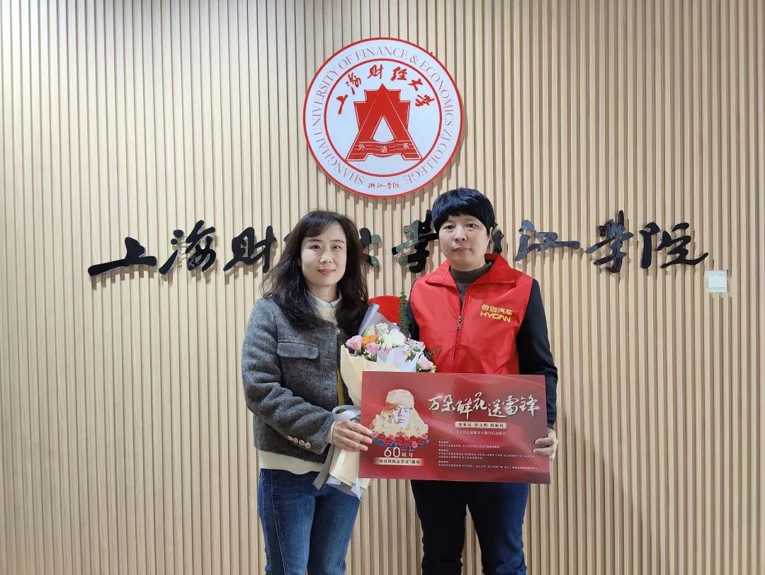 2023年是毛泽东“向雷锋同志学习”题词60周年,3月1日,由金华市新闻传媒中心记者、主播、志愿者组成的送花小分队,来到上海财经大学浙江学院,把鲜花送到由金华市图书馆推荐的“身边的活雷锋”——孔斐然手中,向民间“最美人物”致敬。