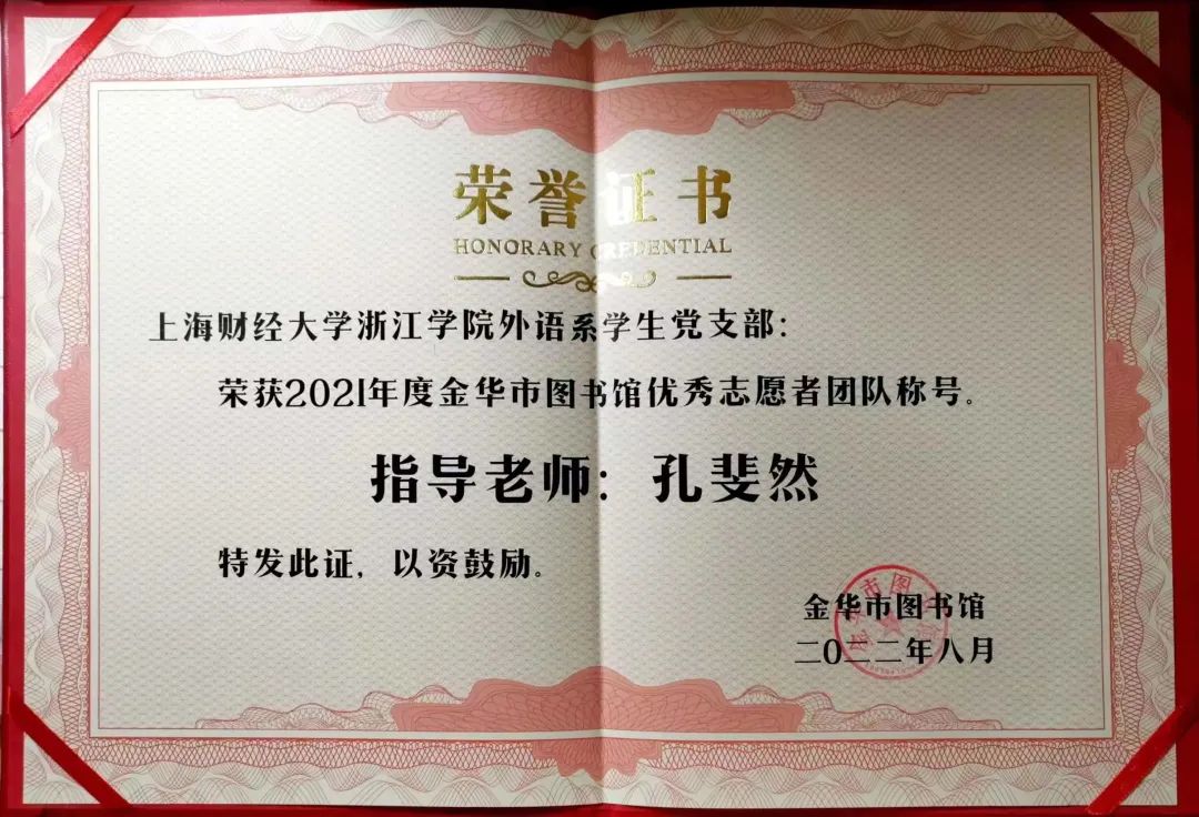 外语系学生党支部多次荣获金华市少年儿童图书馆、金华市图书馆“优秀志愿者团队”称号。服务社会,回馈社会是外语系学生党员志愿者的共同立场,在新时代国际格局中,他们立志做文化的传播者,让阅读走进家门,让民族文化走出国门,让世界听到中国声音。