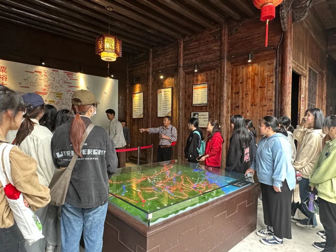 “银坑村是中国工农红军挺进师游击战争时期创建的老革命根据地之一,1935年5月,粟裕将军率领中国工农红军挺进师驻扎在银坑村筹划、指挥浙西南3年游击战争,留下革命的星星之火。”在银坑村村支书陈书记热情地讲述下,八十余年前关于粟裕将军的故事变得鲜活生动。学生党员们通过展厅的文物、图片、资料,详细了解粟裕将军的生平和他为实现共产主义事业所做出的贡献;一幅幅历史图片、一个个革命故事,诉说着红军自强不息、砥砺奋进的光辉历史。“以最小的牺牲换最大的胜利;不在消灭敌人,而在消磨敌人;支配敌人,掌握主动;积极进步,绝少防御;飘忽不定,出没无常;越是敌人后方,越是容易成功。”这段挂在旧址墙上的是粟裕将军归纳的游击战术六原则,大家脑海中浮现出粟裕将军为了战争的胜利做出的不懈努力。