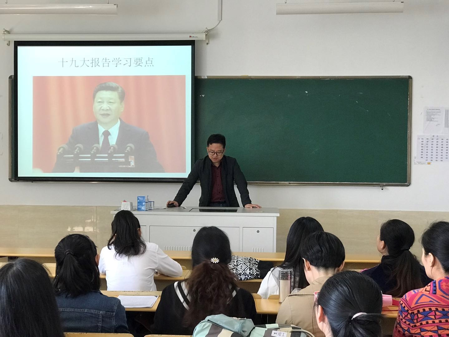2017年10月24日,上海财经大学浙江学院外语系教工党支部所有党员在7幢311教室集中学习了习近平总书记在中共十九大上的报告,其中关于发展教育事业方面的内容更是学习重点。